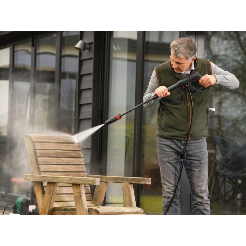 Im Lieferumfang des Hochdruckreinigers sind Zubehörteile für die Autoreinigung sowie verschiedene Werkzeuge zur Oberflächenreinigung enthalten, was ihn zu einer Komplettlösung für jeden Anwender macht. So sorgen Sie ganz einfach für Sauberkeit sowohl im Haus als auch im Garten.