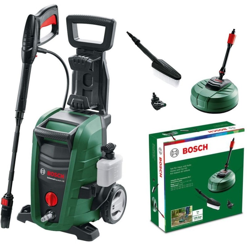 Der Hochdruckreiniger UniversalAquatak 130 von Bosch ist ein äußerst vielseitiges Gerät, das sich hervorragend für jeden Haushalt und jeden Garten eignet. Dank seiner Effizienz ist er das ideale Werkzeug, um verschiedene Oberflächen sauber zu halten, darunter Autos und andere Gegenstände im Außenbereich.