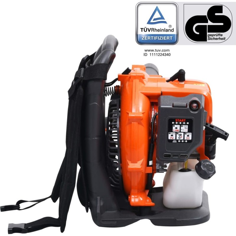 Dank des leistungsstarken 2-Takt-Motors zeichnet sich das Gerät durch einen hohen Luftdurchsatz aus. Nach dem Start erzeugt es einen Luftwirbel, der dabei hilft, das Laub zusammenzutreiben. Der mit dem Daumen bedienbare Steuerhebel und der verstellbare Auslass erleichtern die Reinigung erheblich. Dank der Rucksackkonstruktion mit Schultergurt ist das Gerät auch bei längerem Einsatz sehr bequem zu handhaben.