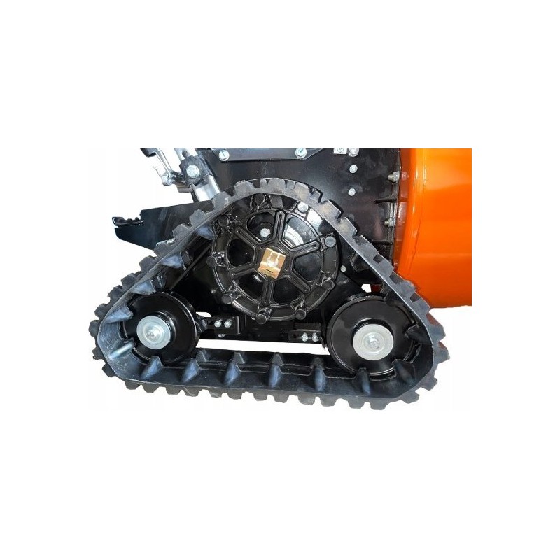 Ein spezielles Raupenlaufwerk sorgt für hervorragende Traktion und Stabilität auf unterschiedlichen Untergründen, wodurch das Risiko, sich in tiefem Schnee festzufahren, minimiert wird. Die Raupen verteilen das Gewicht der Maschine gleichmäßig, was das Befahren von steilen Hängen und nassen Untergründen erleichtert.