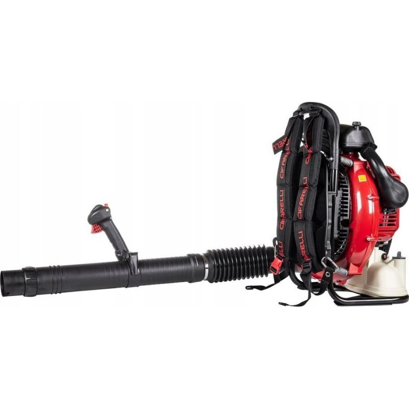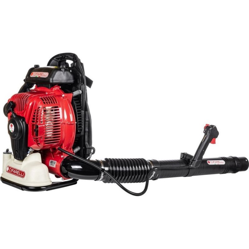 Das benzinbetriebene Laubgebläse von Cifarelli wird von einem Zweitaktmotor mit 77 cm³ Hubraum angetrieben, der eine Luftströmungsgeschwindigkeit am Auslass von 103 m/s erzeugt. Der 5-PS-Motor sorgt für ausreichend Luftleistung, um hartnäckigen Schmutz und Staub zu beseitigen und nicht nur Laub, sondern auch andere schwerere Abfälle zu entfernen. Ein Laubbläser dieser Art wird auch im Hobbybereich zur Reinigung von Maschinen, Geräten oder anderen Gegenständen eingesetzt.