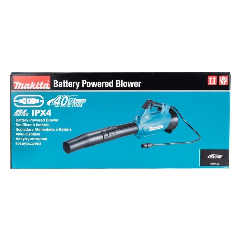 Makita UB001CZ. Modell: Handbläser, Luftgeschwindigkeit: 252 km/h, Produktfarbe: Schwarz, Blau. Batteriespannung: 36 V, Batterielaufzeit: 90 min. Produktbreite: 295 mm, Produkttiefe: 1060 mm, Produkthöhe: 180 mm