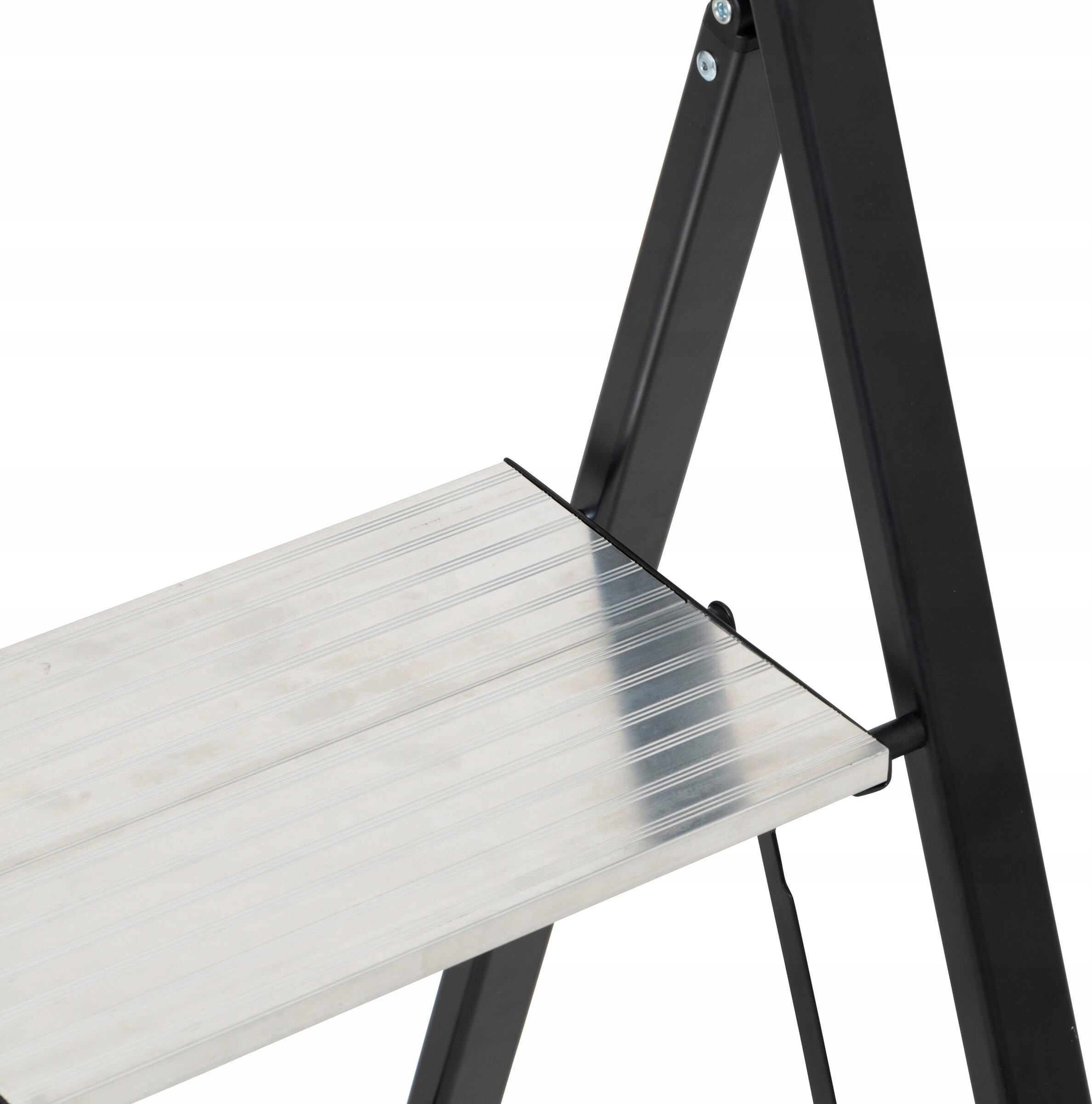 2-stufige Aluminiumleiter mit rutschfesten Stufen und klappbarer Konstruktion – sorgt dank der rutschfesten Oberfläche für Sicherheit und Komfort
