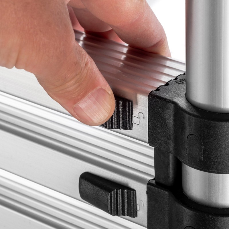 Intuitive Bedienung – das Verstellen der Leiterlänge ist ganz einfach. Eine spezielle Anzeige informiert Sie über die Arretierung bestimmter Sprossen in der gewünschten Höhe.