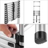 Die Aluminium-Teleskopleiter ermöglicht Ihnen die sichere Ausführung von Arbeiten, bei denen Sie sich in einer bestimmten Höhe befinden müssen. Das Gerät ist mit breiten und stabilen rutschfesten Füßen ausgestattet.