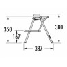 Die Abmessungen des aufgeklappten Produkts betragen 402 mm in der Breite, 387 mm in der Tiefe und 380 mm in der Höhe. Mit einem Gewicht von 3,90 kg ist die Leiter leicht genug, um sie einfach zu transportieren, und gleichzeitig stabil genug, um einen sicheren Stand zu gewährleisten.