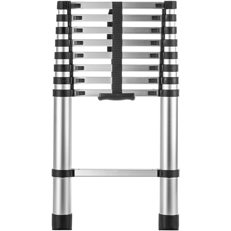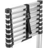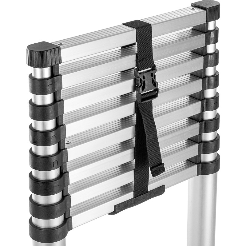 Ideal für den Transport – dank des geringen Gewichts von Aluminium lässt sich die Zalavar-Teleskopleiter leicht transportieren und verstauen. Der Hersteller hat sie mit einem Tragegriff sowie einem Gurt ausgestattet, der ein unbeabsichtigtes Ausklappen verhindert. In