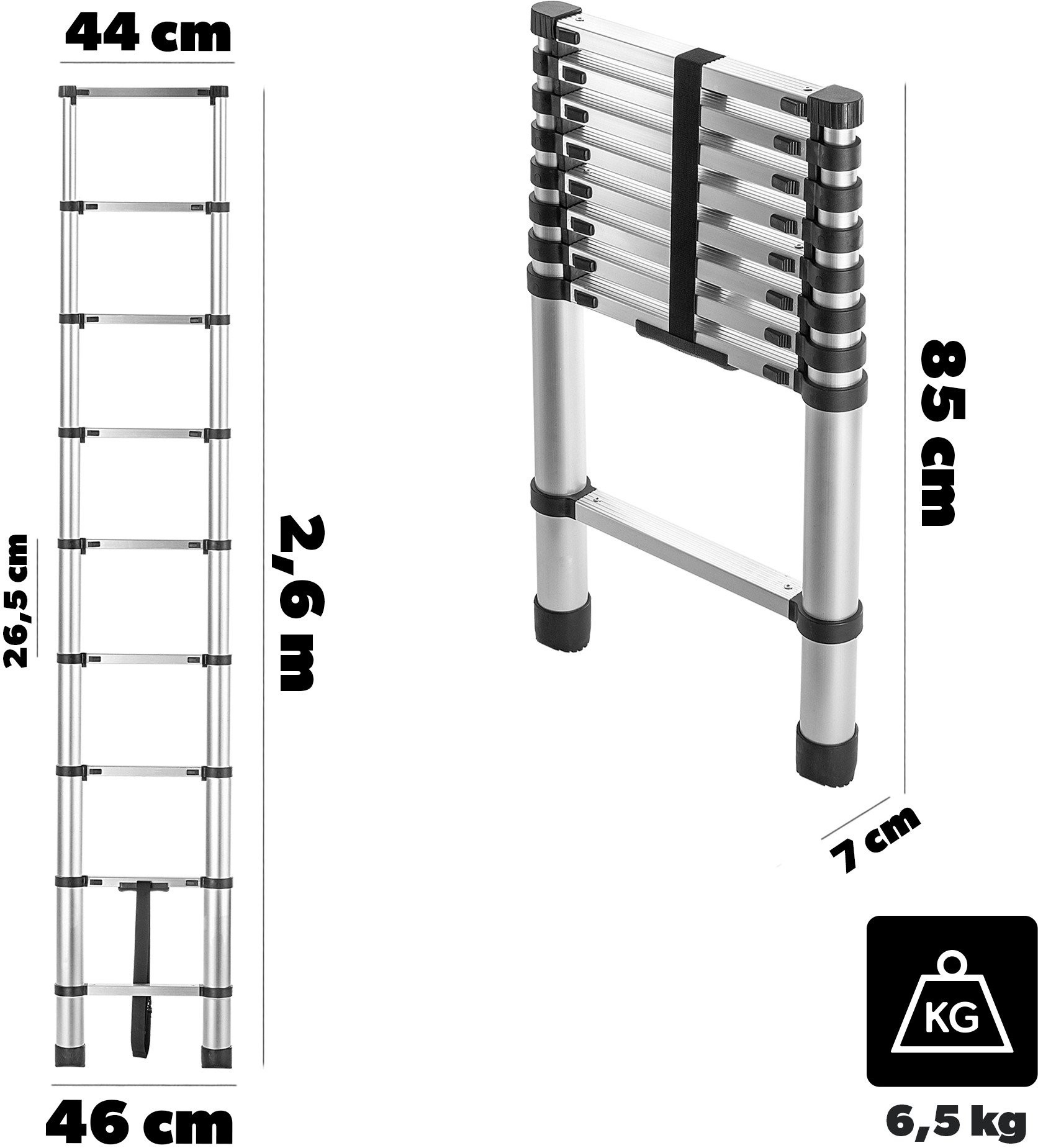 KADAX Aluminium-Teleskopleiter HOME 2,6 m, 9 Sprossen