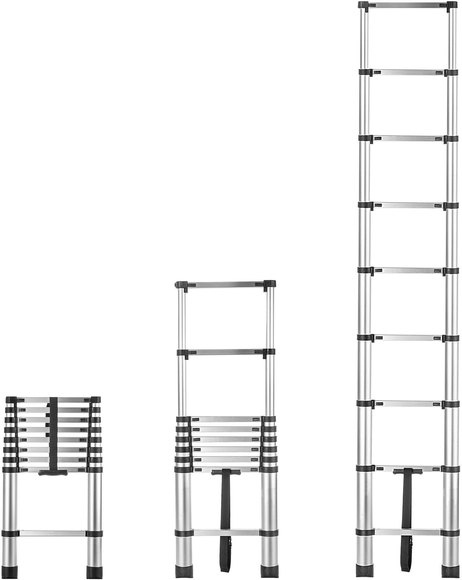 Die Aluminium-Teleskopleiter ermöglicht Ihnen die sichere Ausführung von Arbeiten, bei denen Sie sich in einer bestimmten Höhe aufhalten müssen. Das Gerät ist mit breiten und stabilen rutschfesten Füßen ausgestattet