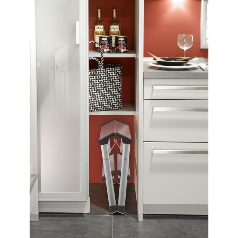 Nehmen Sie die leichte L90 Step-ke-Leiter einfach unter den Arm und nehmen Sie sie mit, wenn Sie die Regale im Keller aufräumen, die Fenster putzen oder eine Glühbirne in der Garage austauschen müssen.