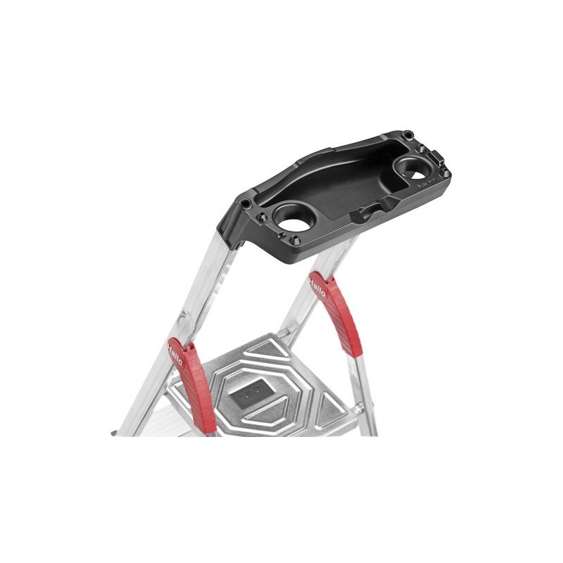 Die Hailo L60 StandardLine ist mit einem multifunktionalen Werkzeugfach ausgestattet, in dem Werkzeuge und Zubehör griffbereit aufbewahrt werden können. Diese praktische Lösung sorgt für mehr Effizienz und Komfort bei der Arbeit.
