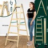 Unsere klappbare Holzleiter ist in vier Varianten erhältlich: mit 3, 4, 5 und 6 Sprossen.