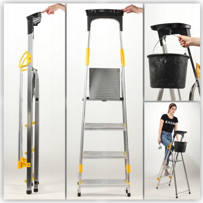 Dank ihrer großen Reichweite ist die Leiter wirklich funktional. Mit ihrer Hilfe erreichen Sie problemlos höhere Regale. Dank ihr können Sie Renovierungsarbeiten, das Streichen von Wänden oder Decken sowie eine gründliche Reinigung unter komfortablen Bedingungen durchführen.