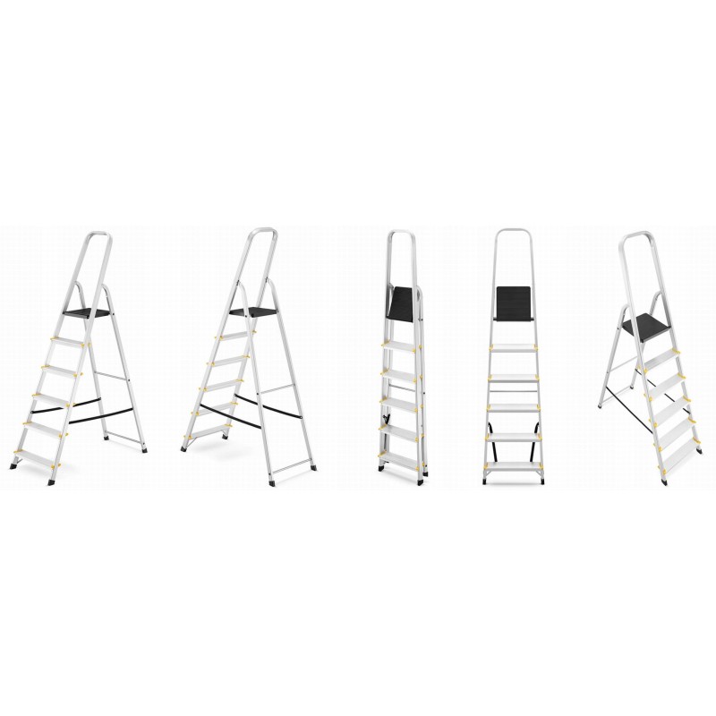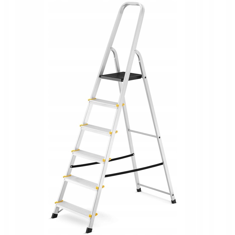 Diese einfache freistehende Leiter eignet sich ideal zum Auswechseln von Glühbirnen oder für andere einfache Arbeiten. Dank ihrer kompakten Größe und ihres geringen Gewichts lässt sie sich leicht tragen und transportieren, was sich z. B. bei Heimwerkerarbeiten oder bei der Renovierung einer Wohnung als nützlich erweist.