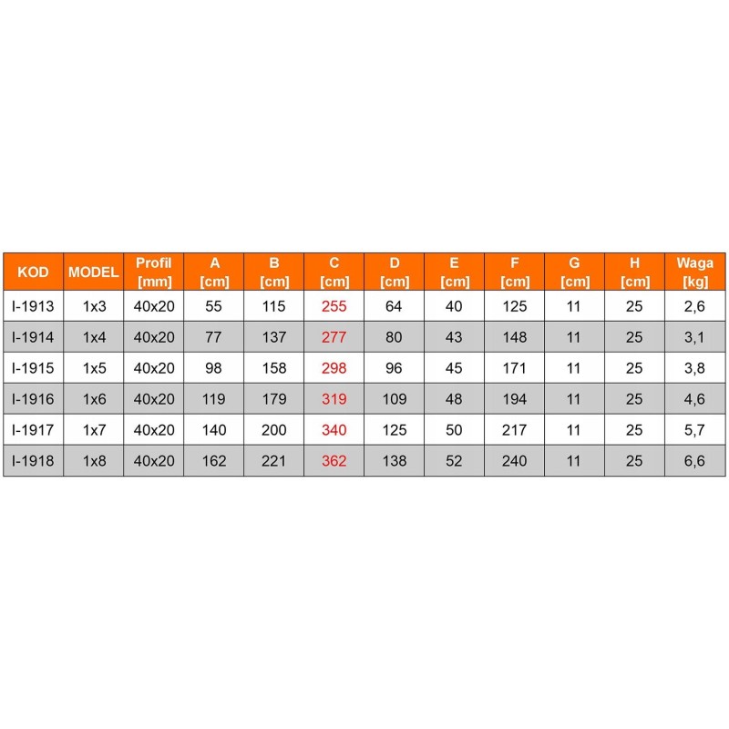 • Profil: 40 x 20 mm