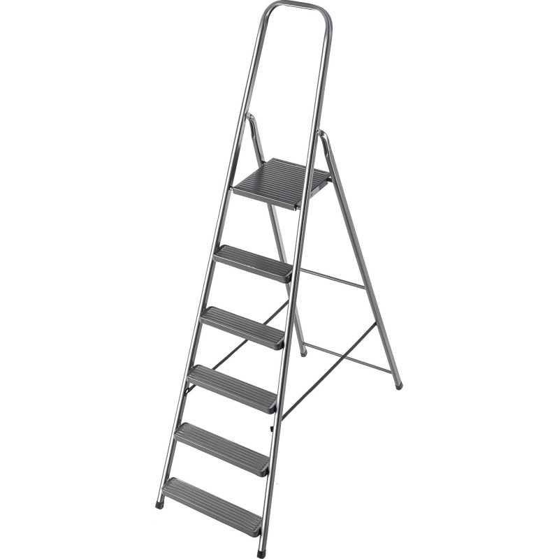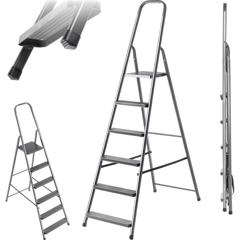 6-stufige Stahlleiter – Klappbare Haushaltsleiter, stabile Stufen, Tragkraft 125 kg