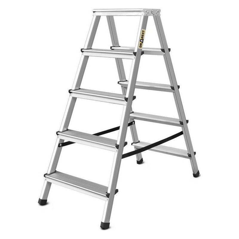 DRABEST Aluminiumleiter, beidseitig nutzbar, 5 Sprossen, Tragkraft: 125–150 kg (Tragkraft 125 kg)
