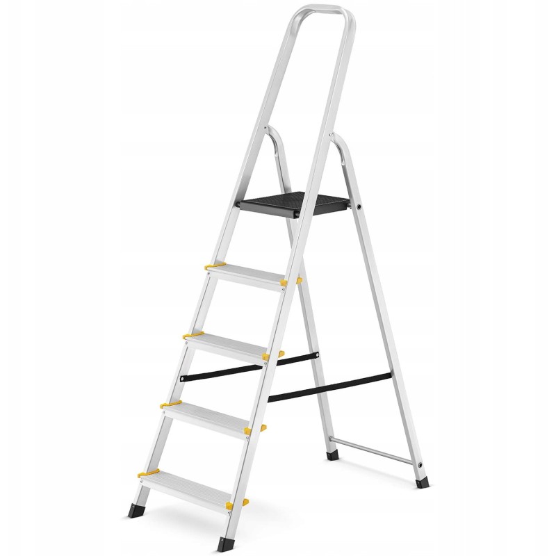 Diese einfache freistehende Leiter eignet sich ideal zum Auswechseln von Glühbirnen oder für andere einfache Arbeiten. Dank ihrer kompakten Größe und ihres geringen Gewichts lässt sie sich leicht tragen und transportieren, was sich z. B. bei Heimwerkerarbeiten oder bei der Renovierung einer Wohnung als nützlich erweist.
