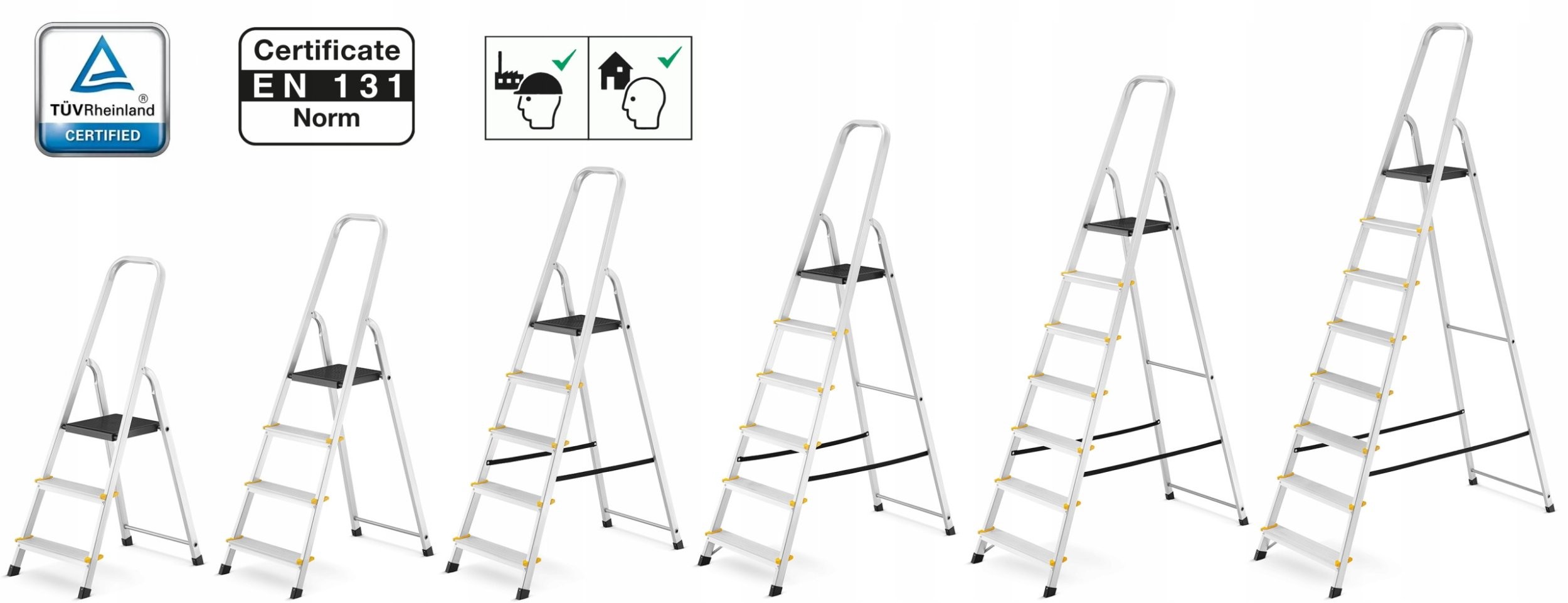 Die aus modernem Kunststoff gefertigte Plattform der Leiter ist fünfmal haltbarer als herkömmliche Stahlplattformen, was für eine bessere Verschleißfestigkeit und Korrosionsfreiheit sorgt. Die Leiter erfüllt die europäischen Sicherheitsnormen EN 131, was ihre hohe Qualität und die Sicherheit bei der Nutzung garantiert.
