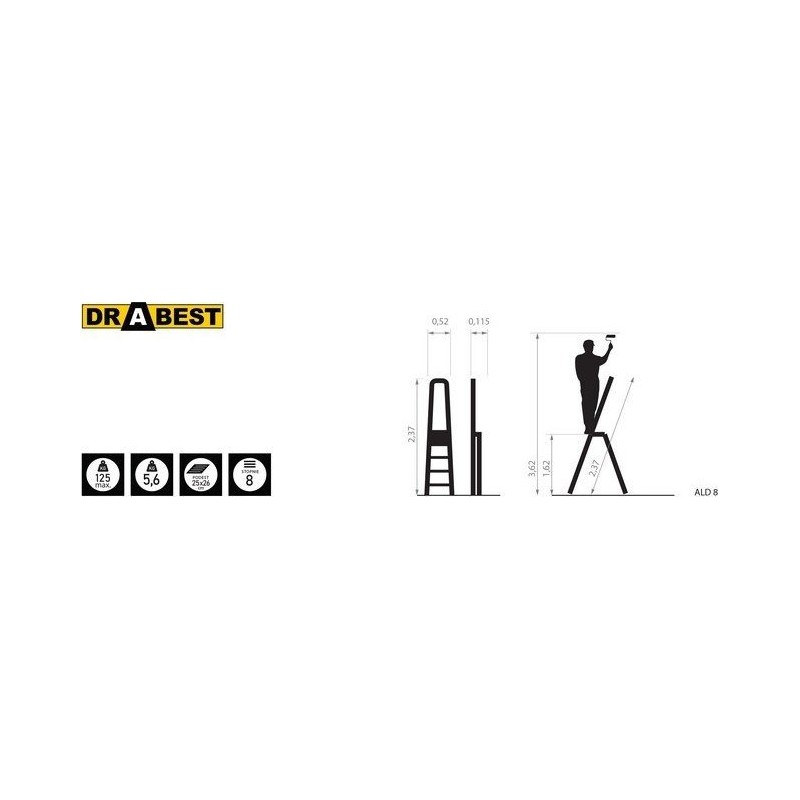 DRABEST Aluminiumleiter, 8 Sprossen, Tragkraft: 125–150 kg (Tragkraft 125 kg)
