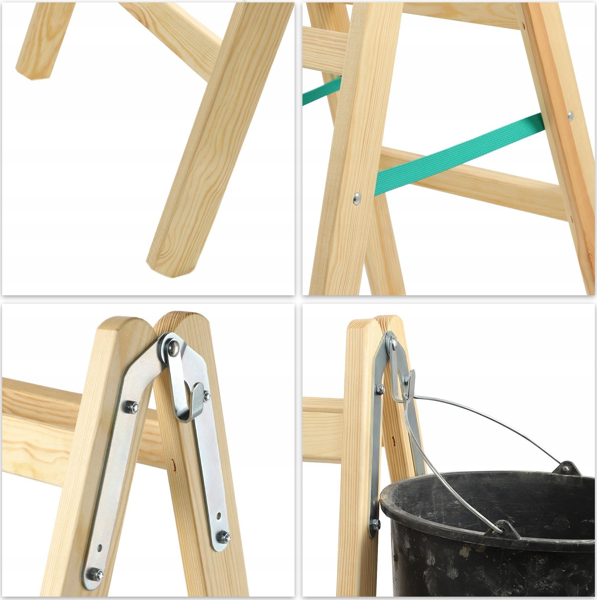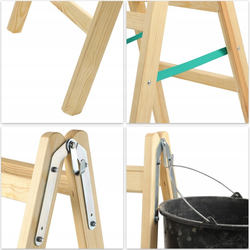 Unsere klappbare Holzleiter ist in vier Varianten erhältlich: mit 3, 4, 5 und 6 Sprossen.