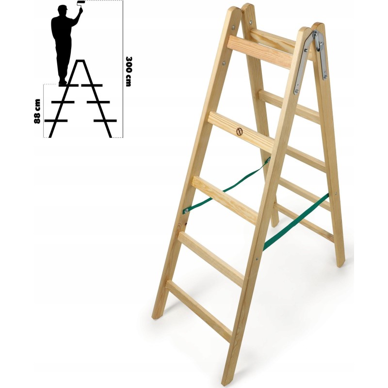 Die Holzleiter mit einer Tragkraft von 150 kg lässt sich leicht zusammen- und auseinanderklappen. Dadurch wirst du keine Probleme bei der Benutzung haben.