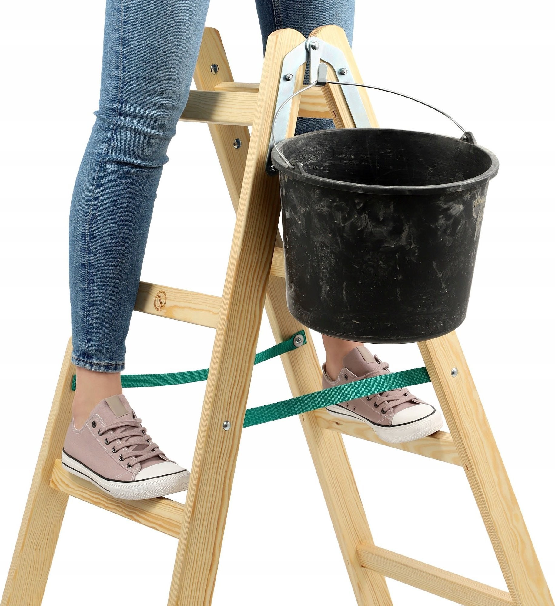 Praktische Holzleiter mit Eimerhaken