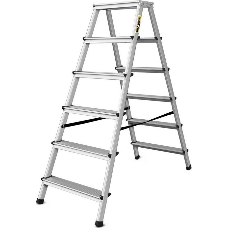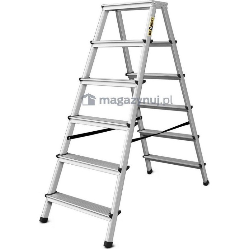 DRABEST Aluminiumleiter, beidseitig nutzbar, 6 Sprossen, Tragkraft: 125–150 kg (Tragkraft 125 kg)