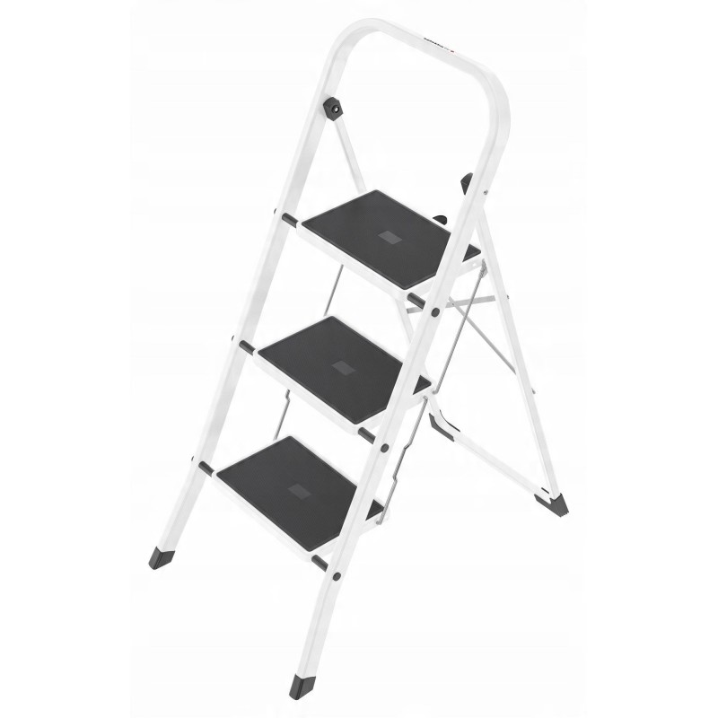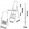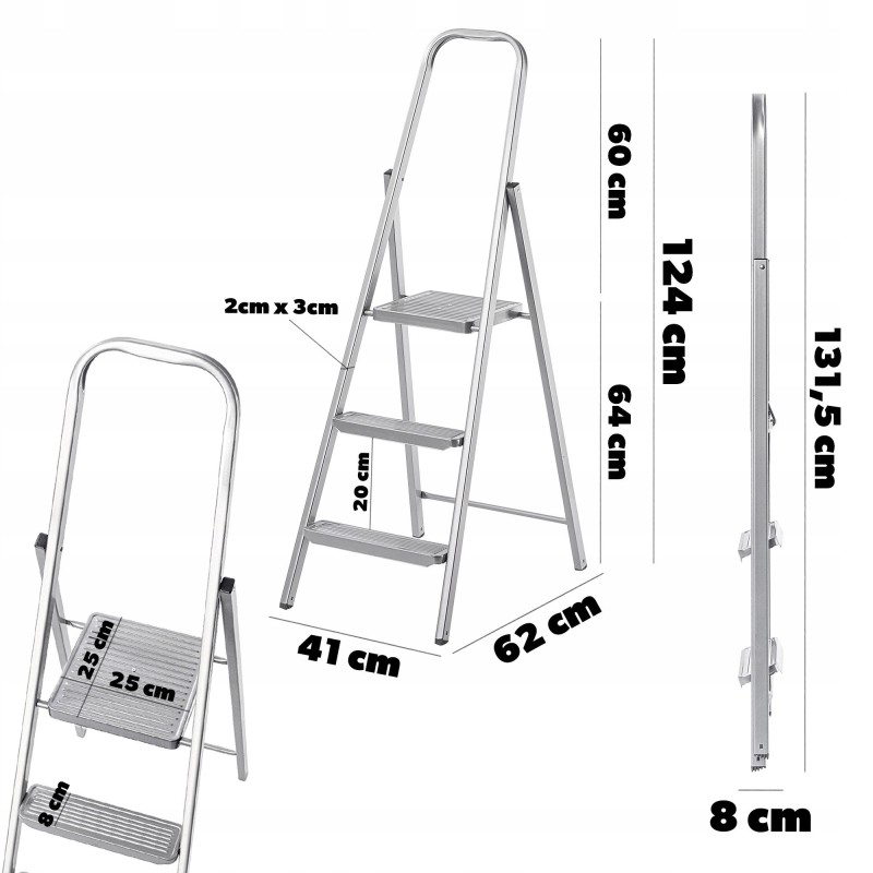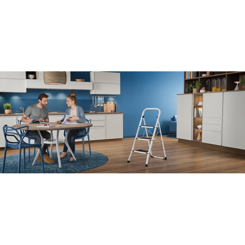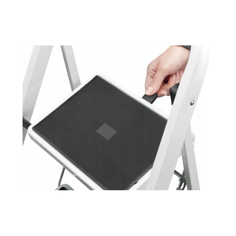 Der hohe Griff aus Vierkantrohr sorgt für Komfort bei der Benutzung, und zusammengeklappt lässt sich die Leiter leicht verstauen. Dank ihrer kompakten Abmessungen passt sie in jeden Raum und ist somit eine praktische Ergänzung für Ihr Zuhause.