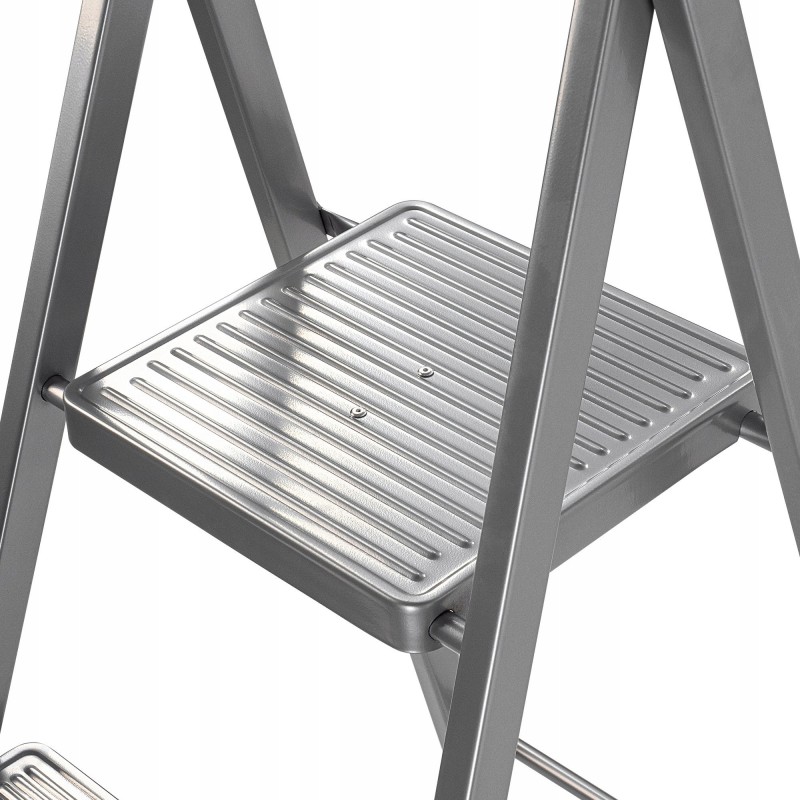 Die Leiter verfügt über extrabreite Stufen, die mit rutschfesten Matten versehen sind. Dadurch kann sich der Benutzer auch bei anspruchsvolleren Aufgaben sicher und stabil fühlen. Dies ist die ideale Lösung für Personen, die die Leiter häufig unter verschiedenen Bedingungen nutzen.