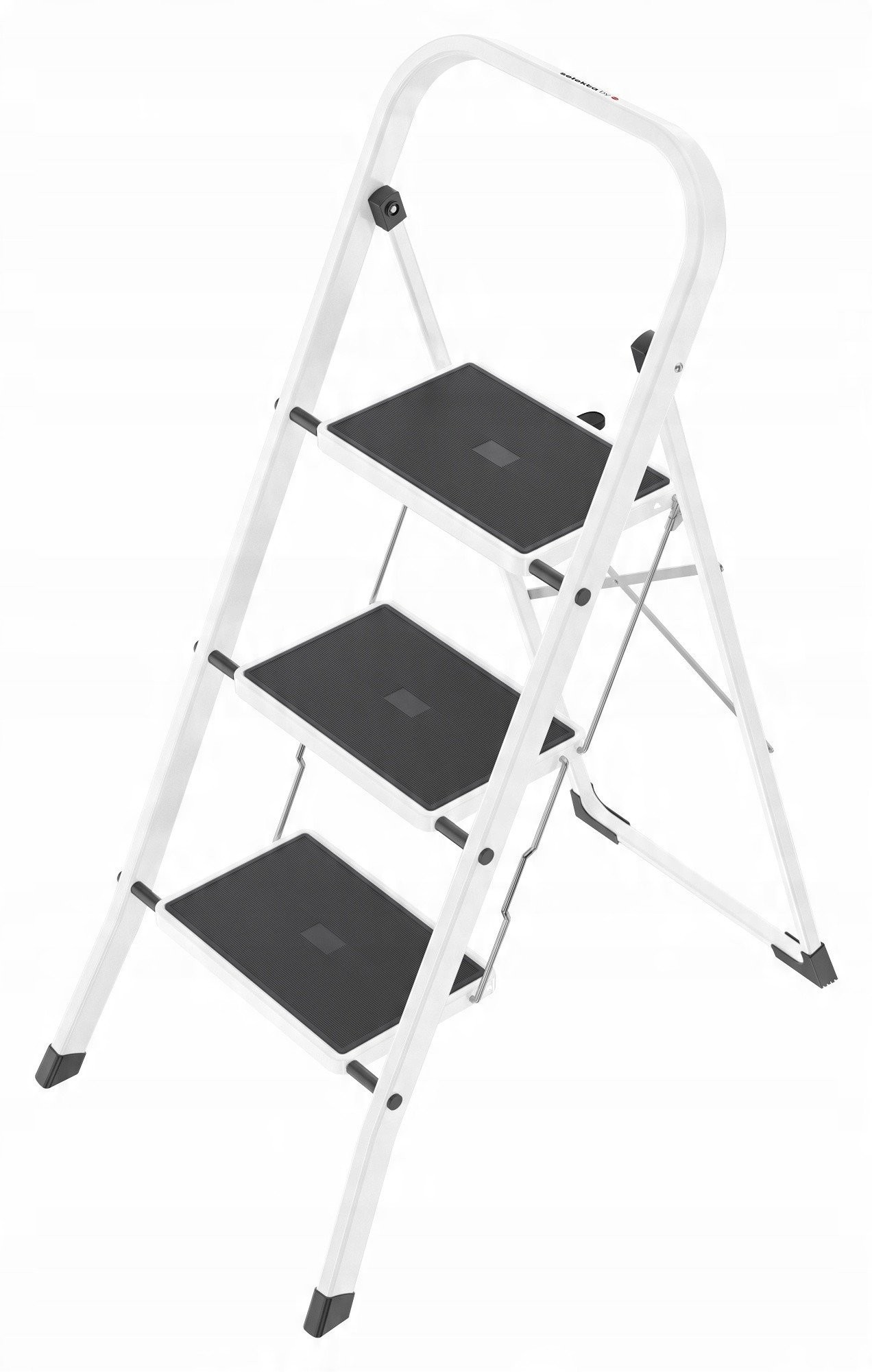 Die Hailo K40 BasicLine ist die perfekte Lösung für alle, die bei alltäglichen Arbeiten im Haushalt Wert auf Stabilität und Komfort legen. Diese aus Stahl gefertigte Klappleiter verfügt über drei breite Sprossen, die für Sicherheit und Zuverlässigkeit beim Gebrauch sorgen. Dank ihrer Konstruktion lässt sie sich leicht verstauen und ist im zusammengeklappten Zustand nur 5 cm dick.