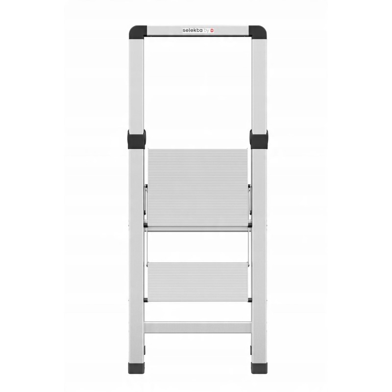 Die Trittplattform ist mit zwei breiten Stufen aus geripptem Aluminium ausgestattet, was nicht nur Komfort, sondern auch Sicherheit beim Auf- und Absteigen gewährleistet. Dadurch werden Arbeiten in der Höhe wesentlich einfacher und ergonomischer.