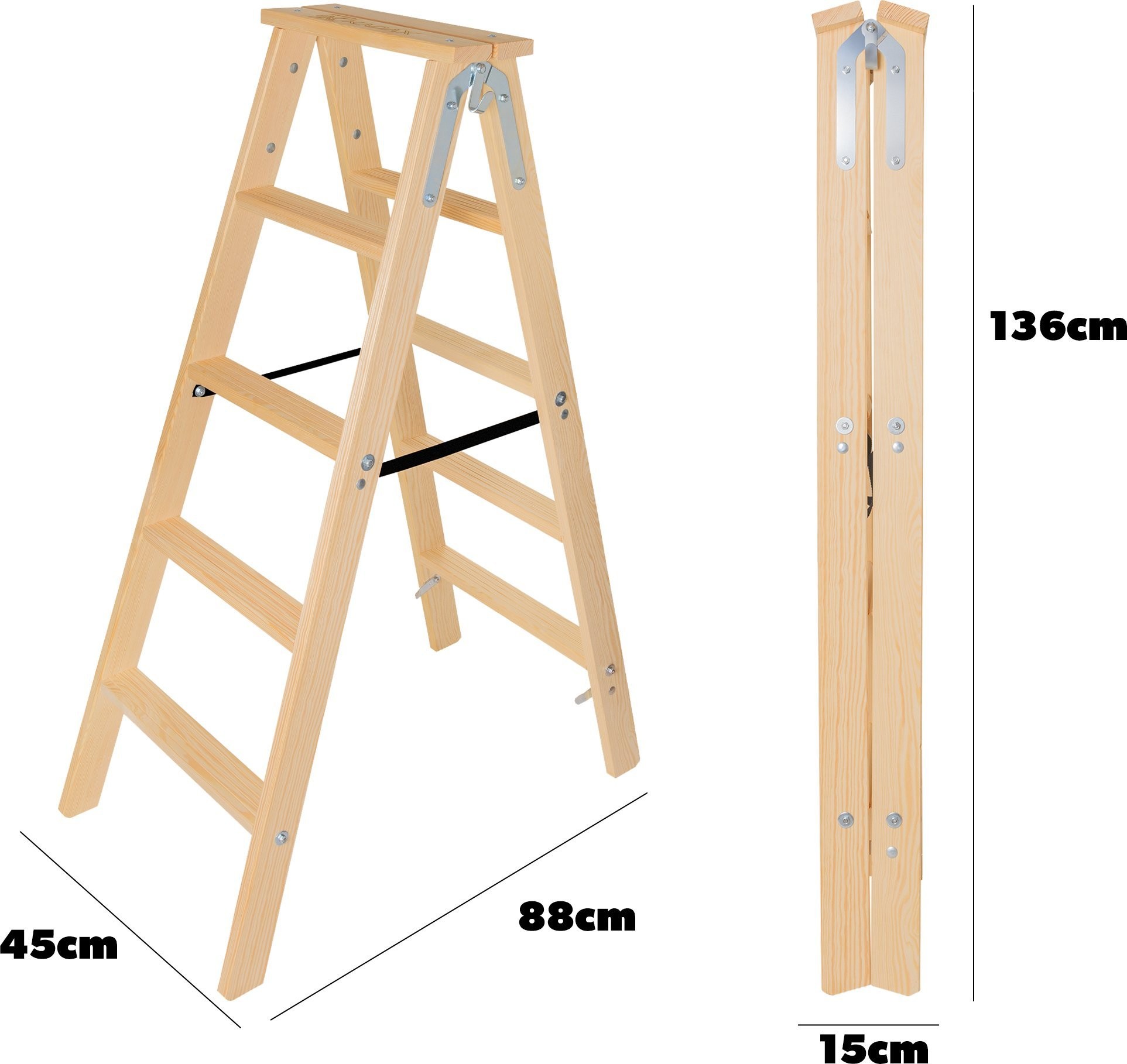 Kadax KADAX 5-stufige Holz-Klappleiter, doppelseitig, für Malerarbeiten, für den Hausgebrauch