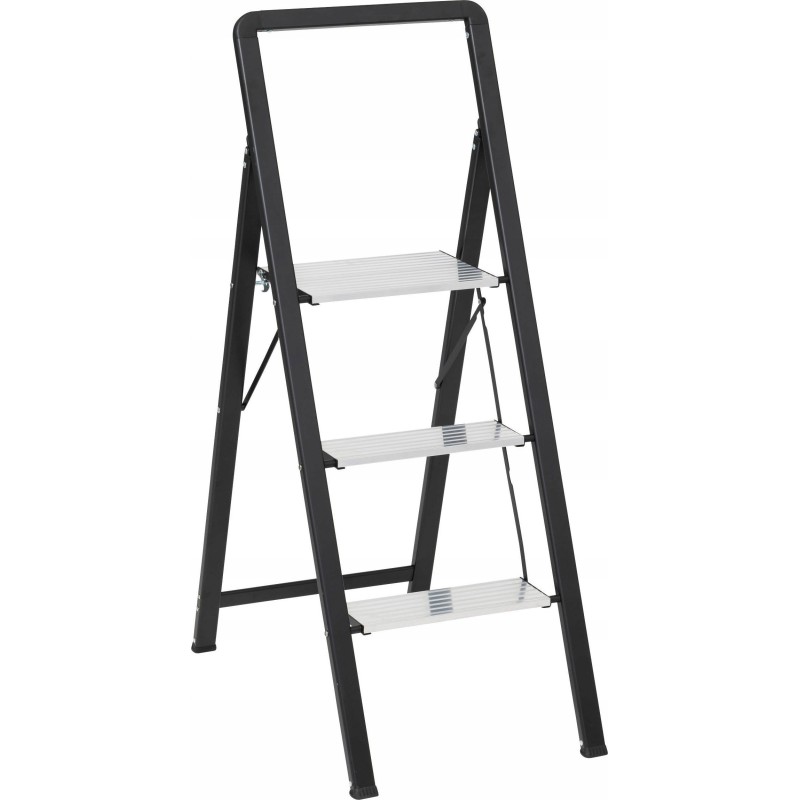 LEICHTER, ZUSAMMENKLAPPBARER ALUMINIUM-STUHL-LEITER, SCHWARZ, 3-STUFIG, EASY, 105 CM, BIS 150 KG