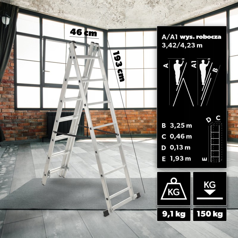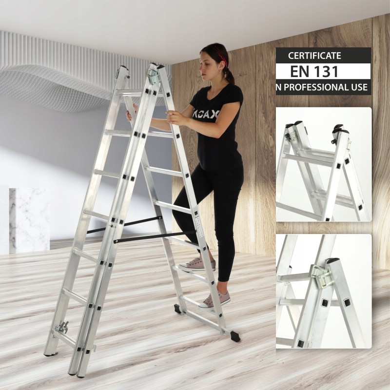 Sie suchen eine Leiter für den Hausgebrauch? Ein stabiles Hilfsmittel für Reinigungs-, Renovierungs- und Malerarbeiten? Die doppelseitige Aluminiumleiter aus unserem Sortiment ist ein Produkt, das Sie auf vielfältige Weise sowohl im Innen- als auch im Außenbereich einsetzen können.