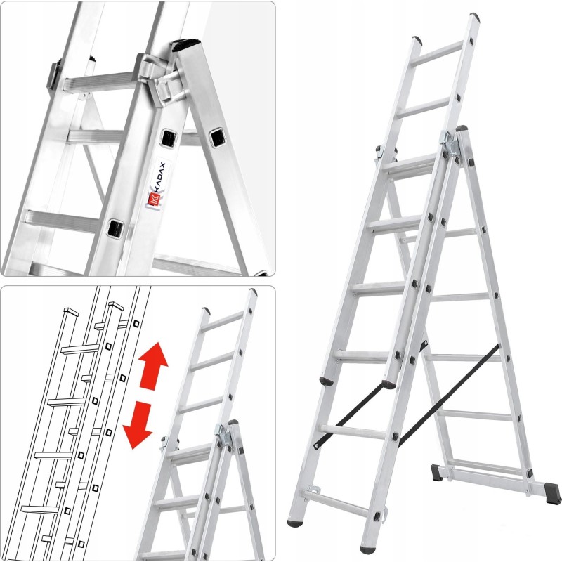 Kadax KADAX Aluminiumleiter 3x7, beidseitig nutzbar + Haken, 150 kg