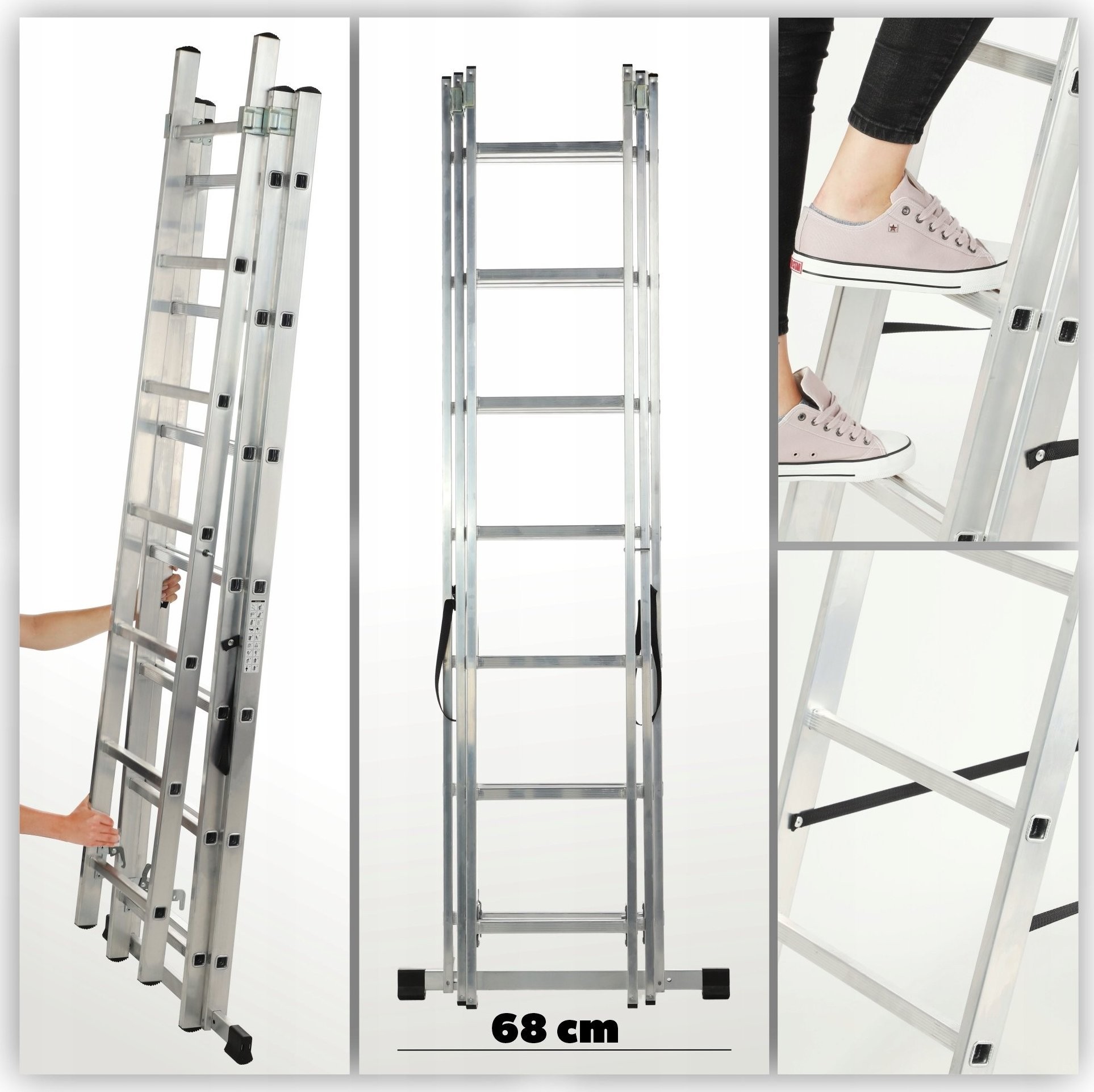 Die aus 3 Segmenten bestehende Aluminiumkonstruktion ist leicht und robust und gewährleistet somit Funktionalität und Sicherheit bei der Nutzung. Erfahren Sie, warum es sich lohnt, sich mit unserer multifunktionalen Leiter auszustatten!