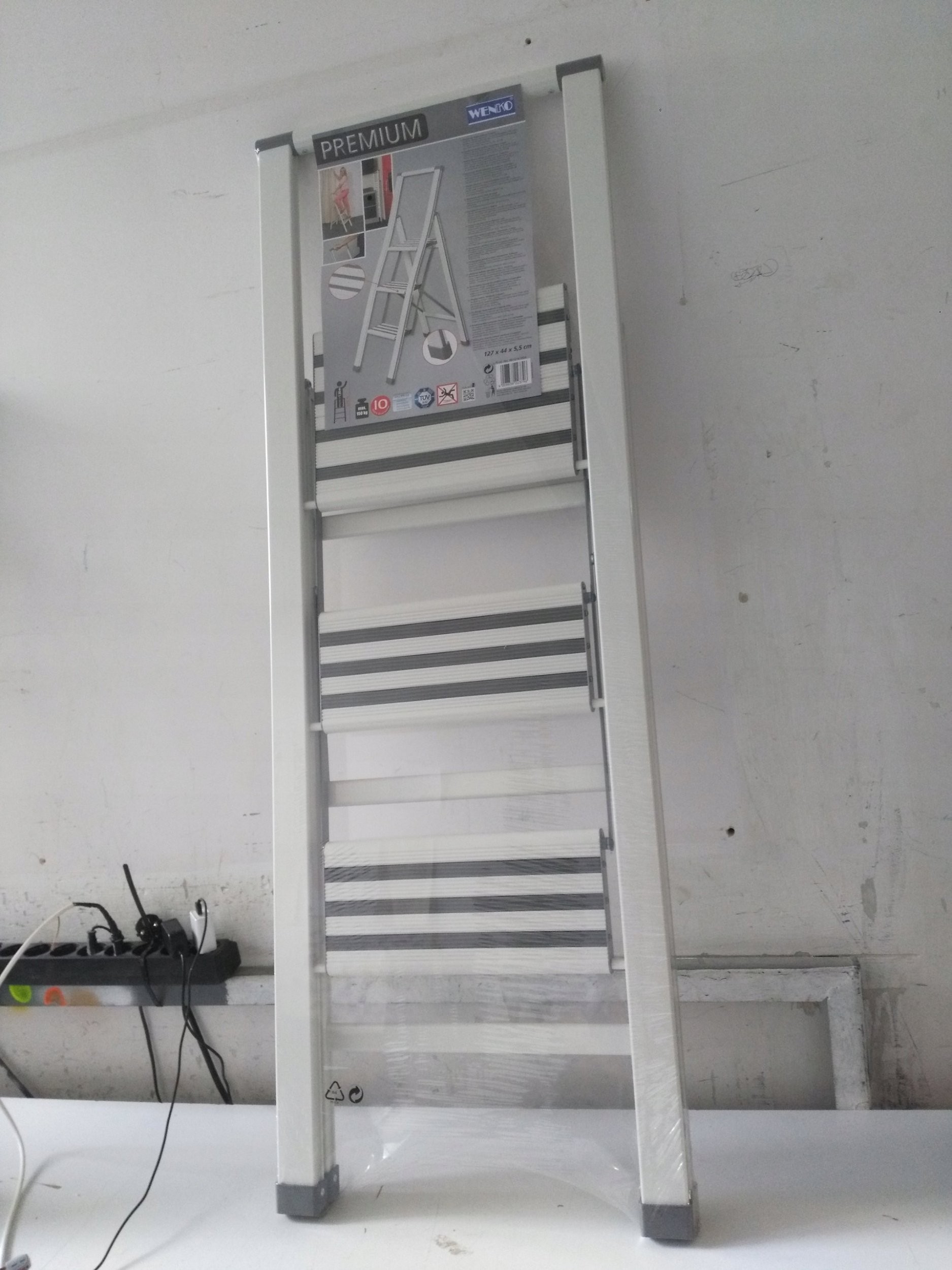 WENKO Aluminiumleiter, 3-stufig – Farbe: Weiß, WENKO