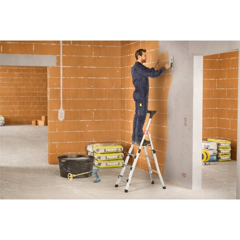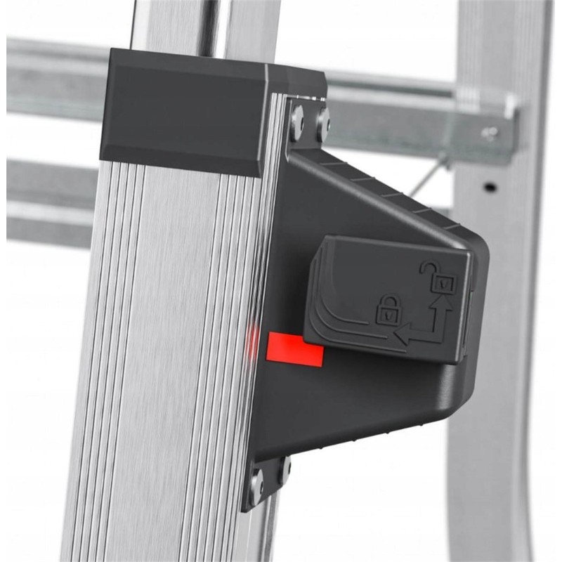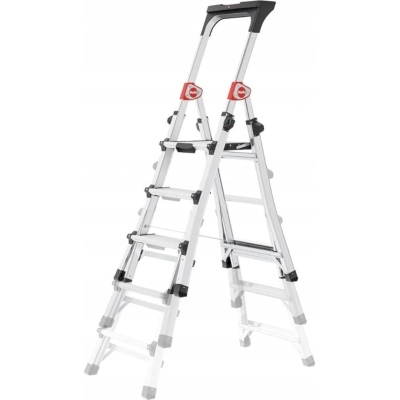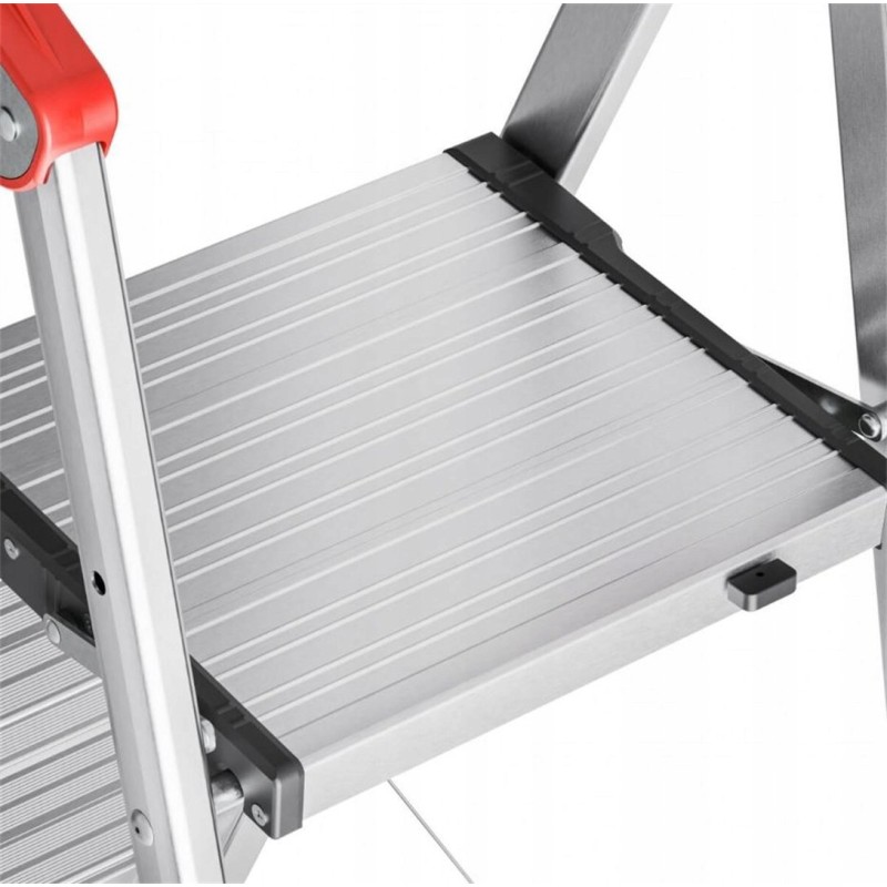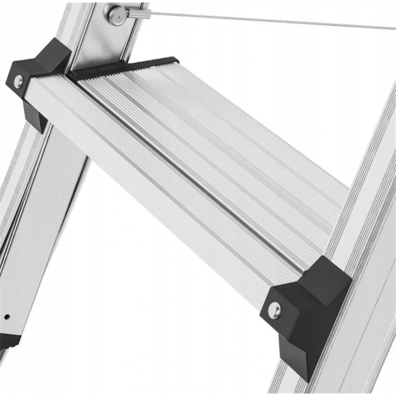 Die Kombination aus Innovation und Funktionalität der Leiter TL100 der deutschen Marke Hailo macht sie zum idealen Begleiter für den Einsatz in deinem Zuhause. Sie verfügt über 3 bis 5 Sprossen, wobei du die genaue Anzahl selbst bestimmst, indem du die Konstruktion entriegelst und auf die gewünschte Höhe ausziehst. Die Sprossen der TL100 sind breit und profiliert und bieten Ihnen 100 % Sicherheit. Rutschfeste Füße und Stahlseile halten die Leiter während des Gebrauchs sicher an ihrem Platz. Darüber hinaus verfügt die TL100 über hohe Handläufe mit einer praktischen Ablage mit 3 Fächern zur Aufbewahrung von Werkzeugen. Dank dieser Funktion müssen Sie die benötigten Gegenstände nicht mehr in Ihren Taschen verstauen.