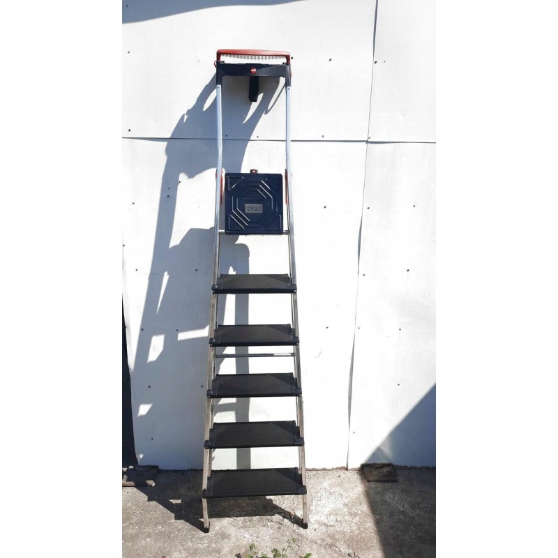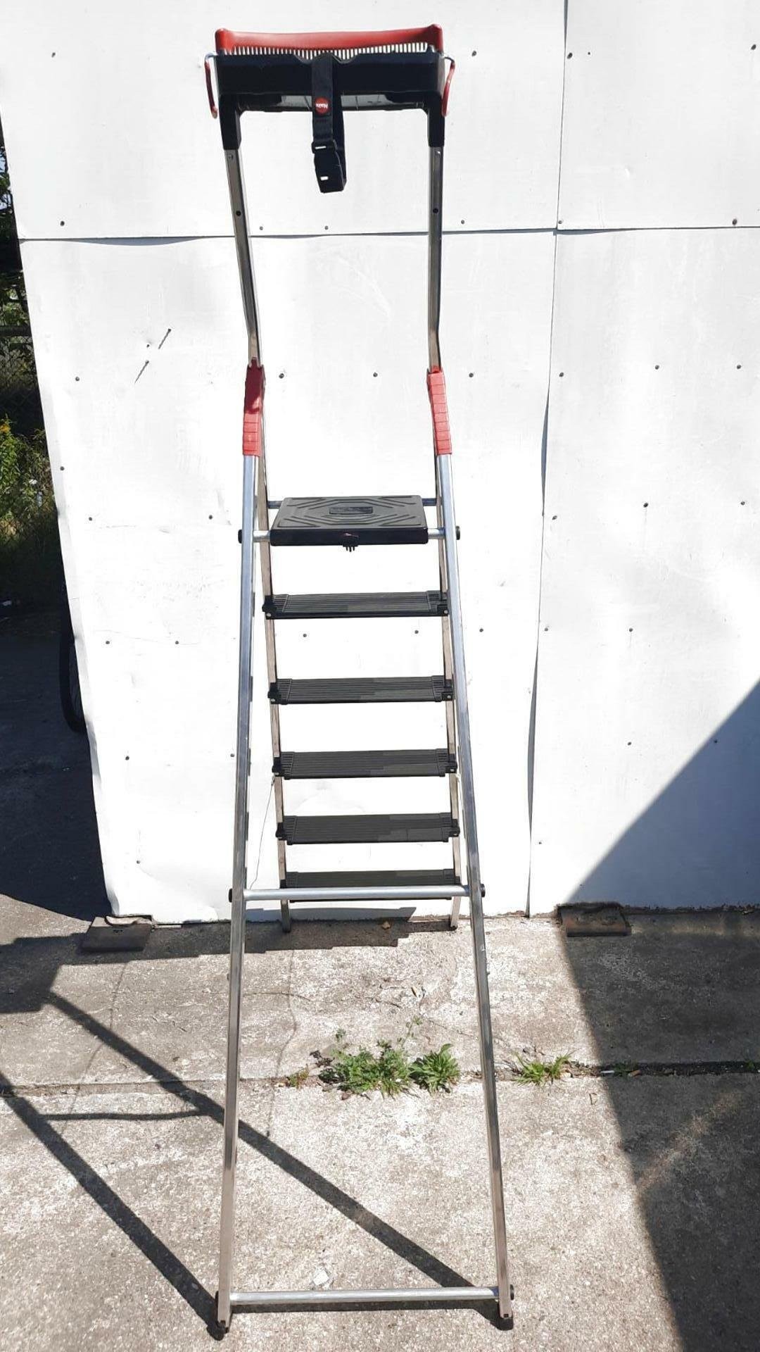 Sichere freistehende Aluminiumleiter mit multifunktionaler Ablage, Sicherheitsbügel und Plattformarretierung für Sicherheit in XXL-Größe: extrem breite Stufen – 130 mm
