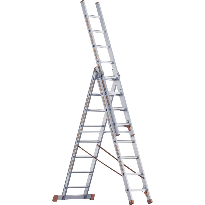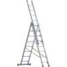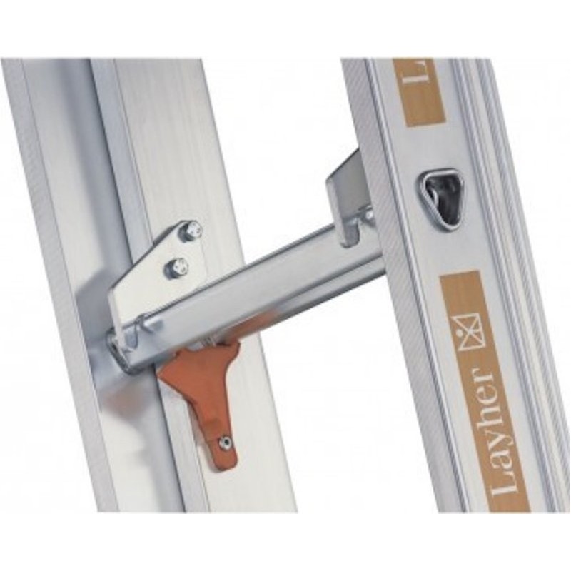 Die Leiter ist aus Aluminium gefertigt, was für Langlebigkeit und Leichtigkeit sorgt. Sie verfügt über 3x14 Sprossen und hat eine Länge von 4,125 m bis 9,75 m. Die maximale Tragkraft beträgt 150 kg.