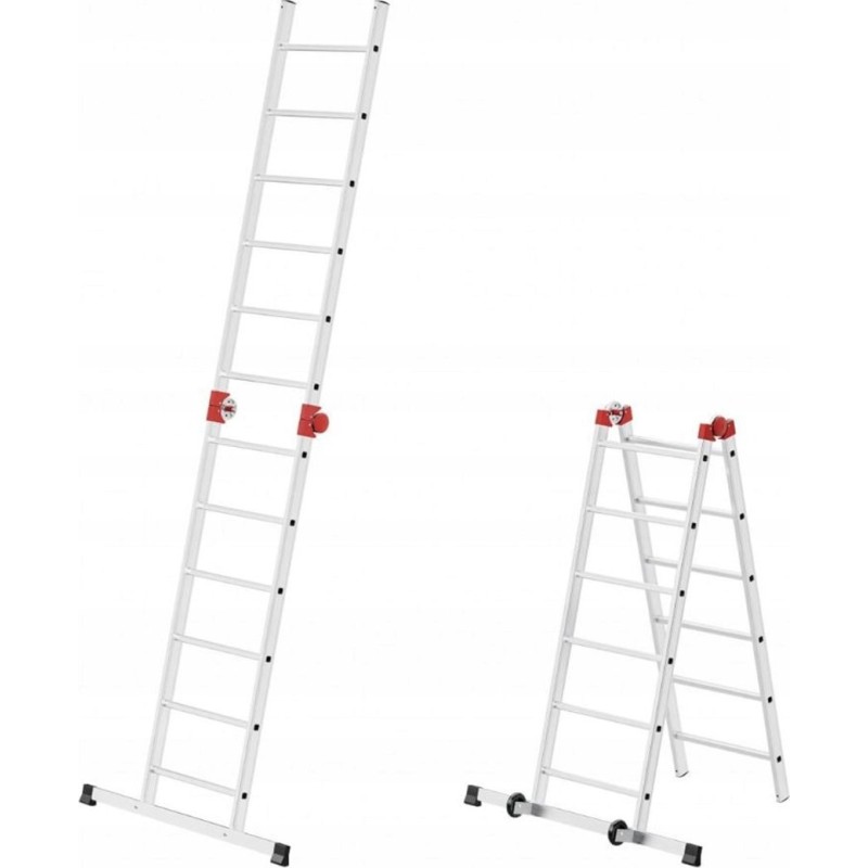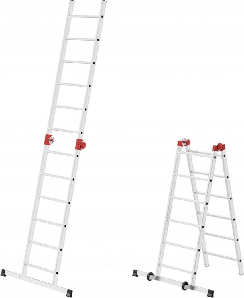 • 2 Leiterelemente mit je 12 Sprossen (27 × 27 mm) mit Sicherheitsgelenken zum Verriegeln und Entriegeln der Leiterabschnitte