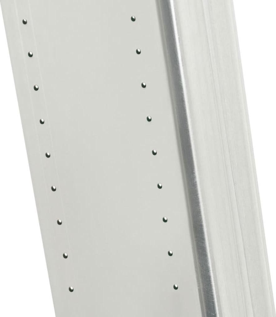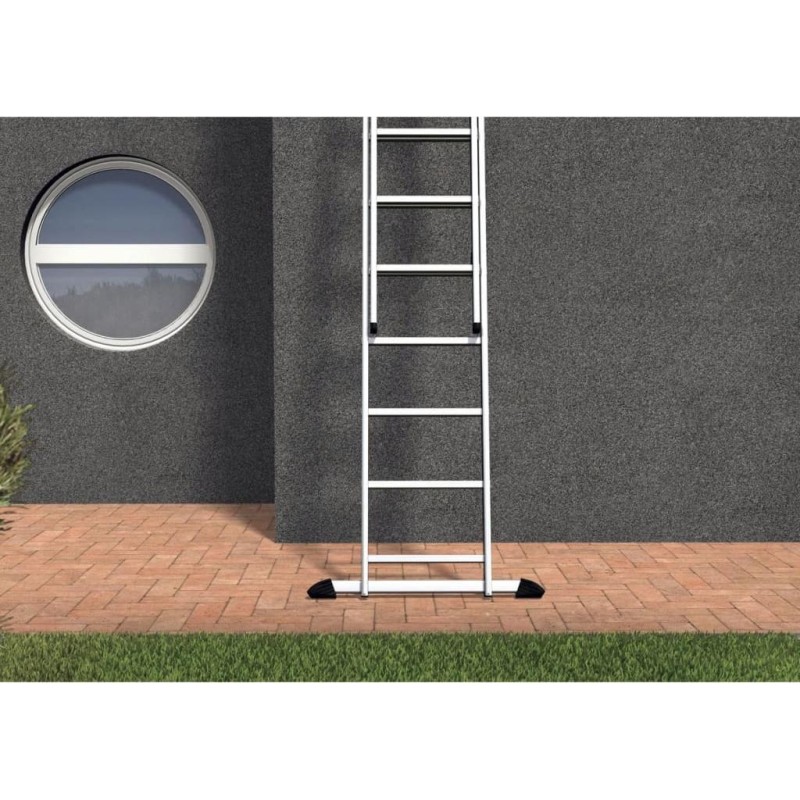 Dank verschiedener Arretierungsmechanismen und der rutschfesten Profilierung der Stufen garantiert die Leiter während der gesamten Nutzungsdauer maximale Stabilität. Zwei durchgehende Auflageflächen und zwei große rutschfeste Füße am Stabilisator am Fußende sorgen für maximale Sicherheit. Zwei Paar robuste Verriegelungshaken mit automatischen Mechanismen, die ein Hochziehen und Verschieben verhindern, bieten zusätzliche Sicherheit. Eine spezielle, multidirektionale Profilierung verleiht den quadratischen Sprossen 40 % mehr Rutschfestigkeit. Die Höhe zwischen den Sprossen ist verstellbar, und die Sprossen sind mit verstärkten Verbindungsstücken fest an den Schienen befestigt. Im Lieferumfang der Leiter sind robuste Spanngurte enthalten, und die Oberfläche des Handlaufs ist strukturiert, sodass er bequem zu greifen ist.