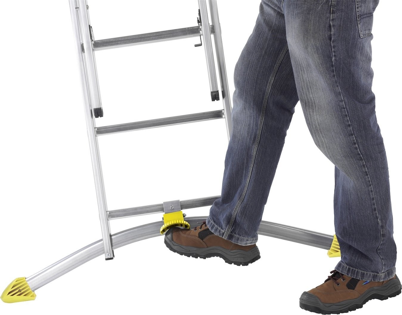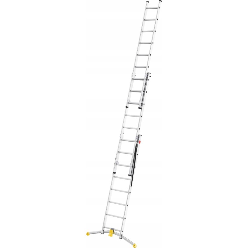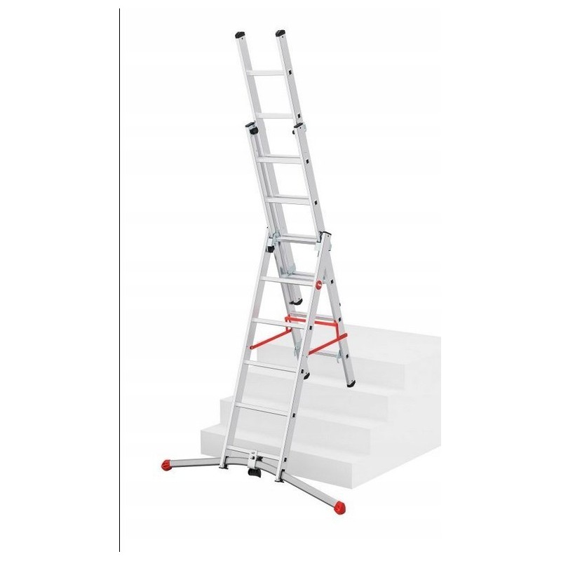 Die HAILO S100 PROFILOT ist eine dreiteilige Aluminium-Kombileiter mit LOT-System, das den Aufstellbetrieb auf unebenem Untergrund ermöglicht.