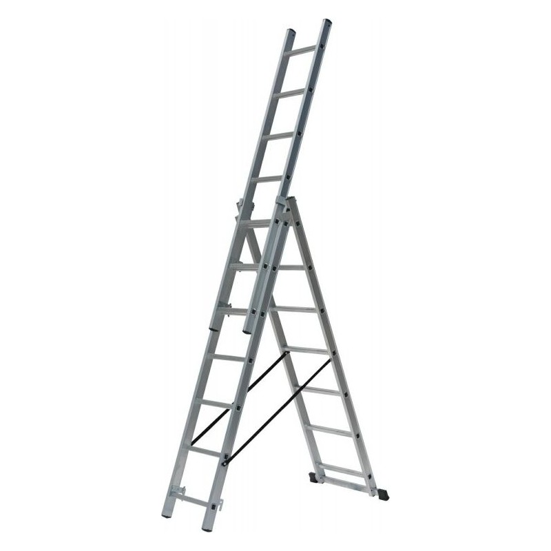 Multifunktionale Aluminiumleiter, 3 x 11 Sprossen, 150 kg (AW23091)