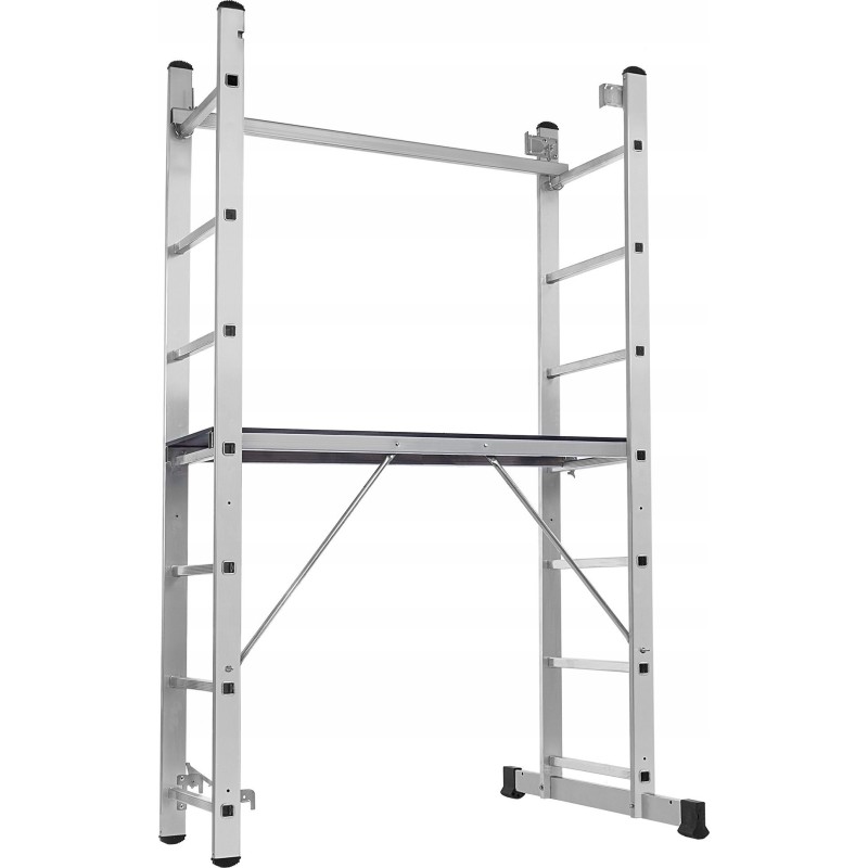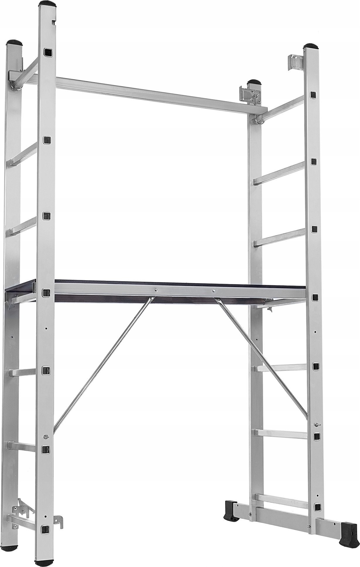Das Aluminiumgerüst KADAX ARD2x7 BASI ist die perfekte Wahl für alle, die vielseitige Ausrüstung für Arbeiten in der Höhe benötigen. Dank seiner durchdachten Konstruktion kann es sowohl als Anlehngerüst als auch als freistehendes Gerüst verwendet werden, was es zu einem äußerst praktischen Werkzeug für jeden Haushalt und Garten macht.