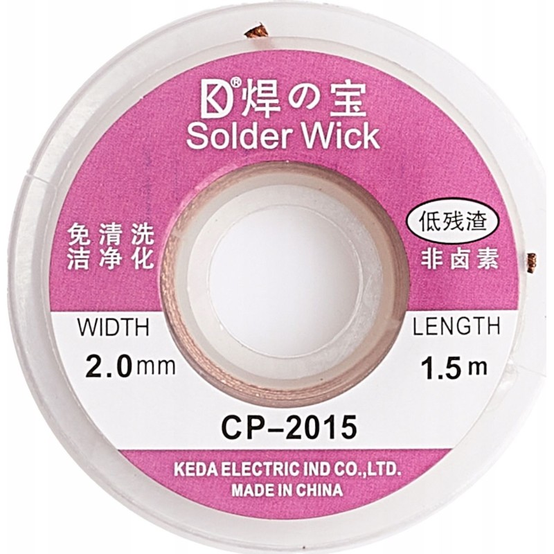 Geflecht 2 mm x 1,5 m – Das Absaugband besteht aus einem Geflecht aus feinen Drähten und ist die ideale Lösung, um Zinn durch Adhäsion von Lötstellen zu entfernen. Es ist bei allen Reparaturen in Elektronikwerkstätten unverzichtbar.