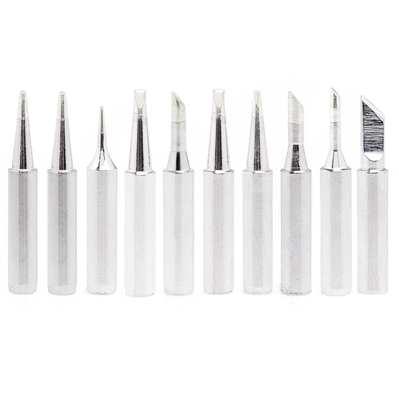 Das Set enthält 10 Spitzen der Serie 900M in verschiedenen Formen und Größen, wodurch das Werkzeug an spezifische Lötanforderungen angepasst werden kann. Dadurch wird der Techrebal-Lötkolben zu einem äußerst vielseitigen Werkzeug, das sich für zahlreiche Anwendungen eignet, von der Reparatur von Elektronik bis hin zu komplexeren Projekten.