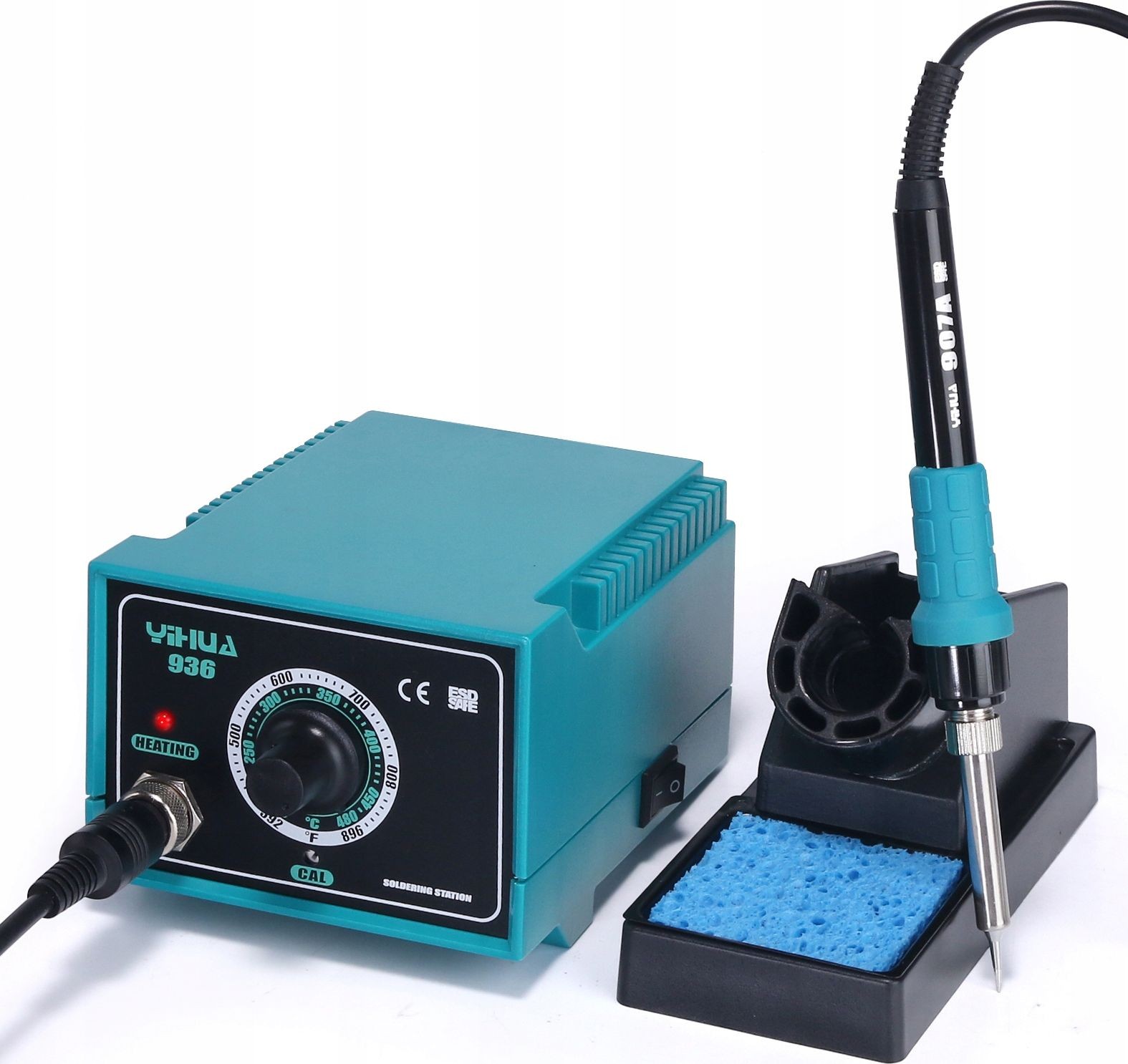 Lötstation im Set mit dem Lötkolben 907A mit einer sehr hohen Spitzenleistung von 60 W, dank der die Spitze in kurzer Zeit auf die gewünschte Temperatur erhitzt werden kann. Sie ist außerdem mit einer ESD-SAFE-Sicherung ausgestattet, die sie vor Überhitzung schützt. Das Modell 936 ist das zuverlässigste und bewährteste Modell, ideal für den Hobbygebrauch sowie für kleine Werkstätten – die perfekte Station, um Ihre ersten Schritte im Löten zu machen. Die Station verfügt über eine Temperaturregelung im Bereich von 200 °C bis 480 °C. Der Aufbau der Station ist unkompliziert, weshalb das Gerät praktisch störungsfrei ist. Die Station verfügt über eine Temperaturstabilisierung, d. h. die eingestellte Temperatur wird während des Lötvorgangs konstant gehalten.
