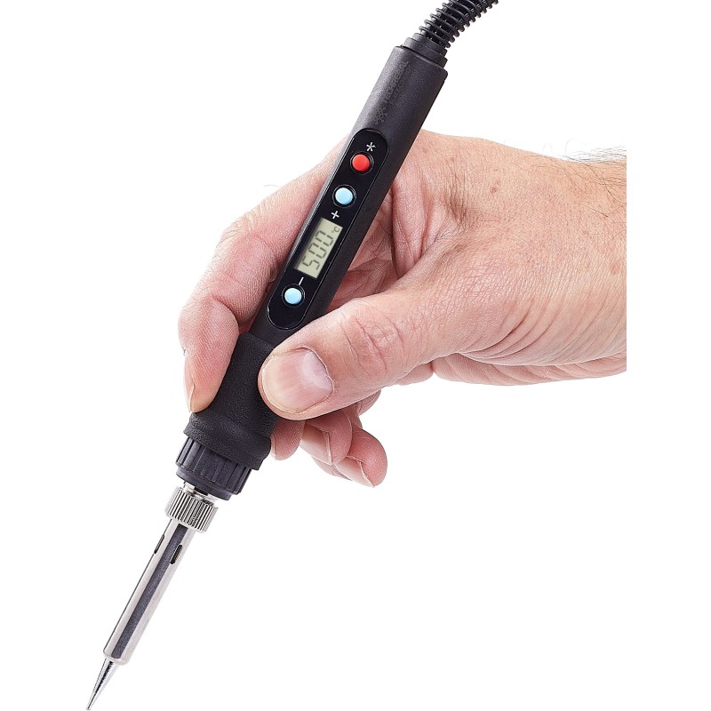 Das Gerät zeichnet sich durch schnelles Aufheizen und eine Temperaturstabilität von +/- 5 °C aus, was ein effizientes und präzises Löten ermöglicht. Ausgestattet mit einem LCD-Display ermöglicht der Lötkolben eine einfache Überwachung der Temperatureinstellungen.